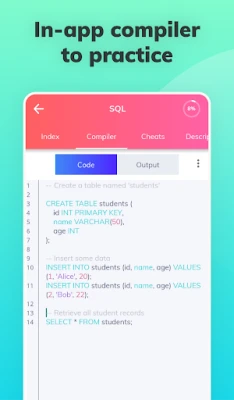 Learn SQL is a must have app for all coding learners or computer science students to learn sql programming language whenever they want and wherever they want. Whether you’re preparing for an sql interview or any exam that requires sql programming knowledge, you can find amazing content on this programming learning app.
