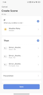 2. Multi-people control: all family member can control the devices with App,not at the same time. 3. Timer: set timer to turn on or turn off the unit. 4. Device sharing: One tap to share devices among family members. 5. Easy connection: easily and quickly connect App to devices. 6. Schedule: make a schedule of air conditioner operation for a week.
