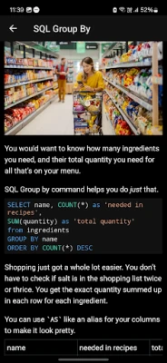It covers DDL (Data definition language), DML (Data manipulation language) and DQL (Data query language)
